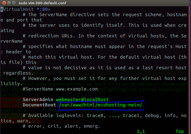 나는 /var/www/html/ecohosting-main/라는 경로를 입력했다.
