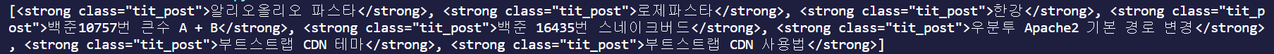 나는 이제 타겟을 블로그 제목들로 잡아 출력해볼 것이다.