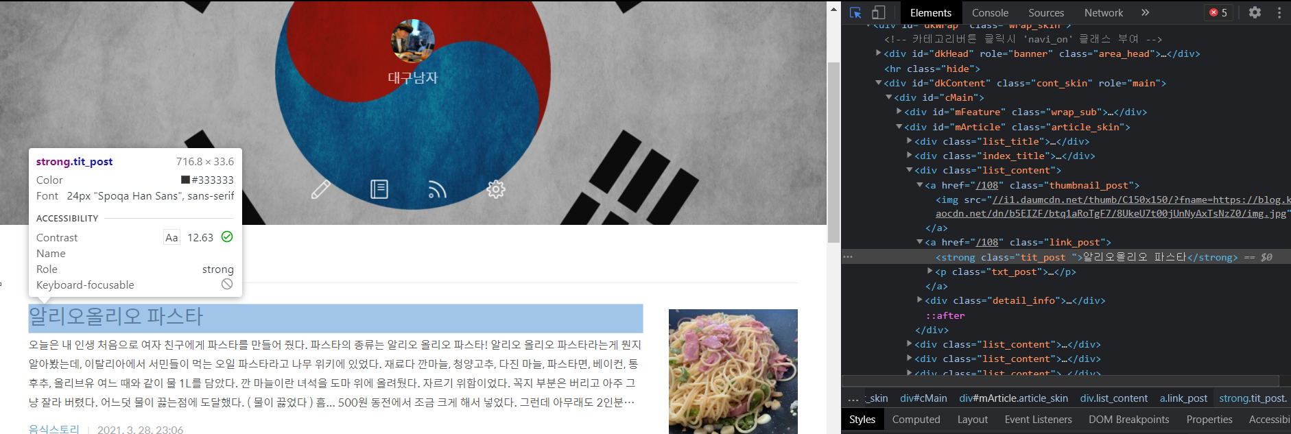 3. 괄호 안을 설명 하자면 strong이라는 Type에 tit_post라는 class를 불러온다는 것이다.