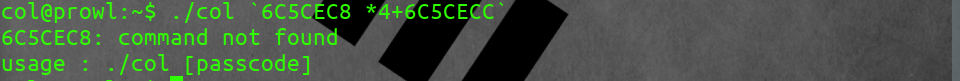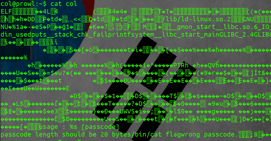 호기심에 col을 cat으로 열어 보았다. ㅎㅎ 역시나 외계어 그 와중에 %s 라고 문자열을 받는 듯한 코드가 보였다.