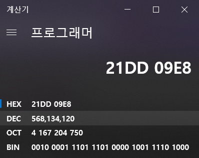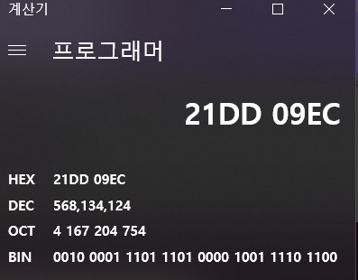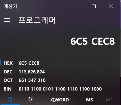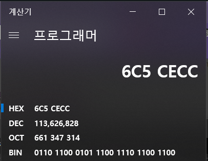 나는 일단 그냥 윈도우 10에 있는 계산기를 켜서 해시값 그대로 복사후 계산기에 붙혀넣기 했다.