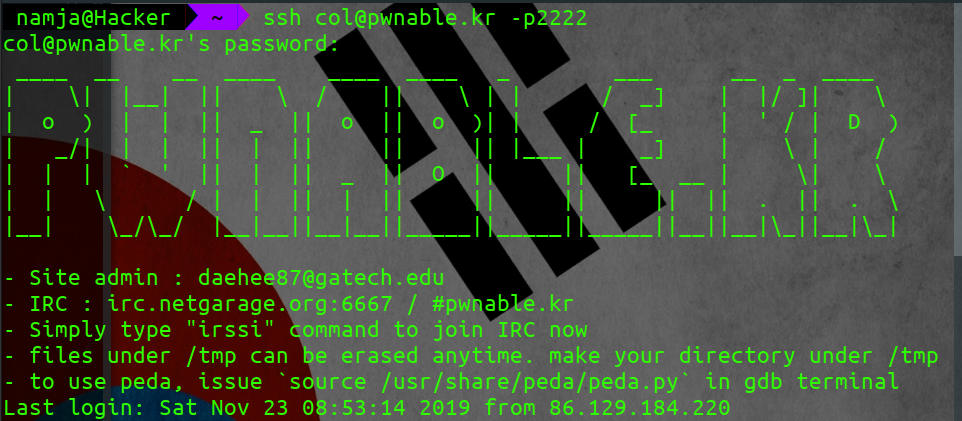 역시나 제작자의 나름 디자인한 pwnablee.kr이 보였다.