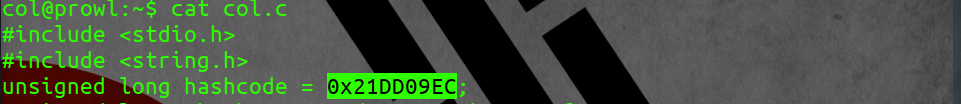 들어간후 일단 뭐가 있는지 ls를 쳐보니 col, col.c flag 가 있었다.