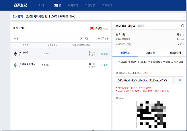 일단 자신의 코인 지갑 주소를 발행받아야 한다.