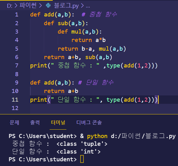 print(" 중첩 함수 : " ,type(add(1,2)))
