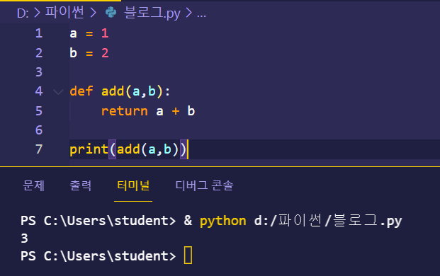 def add(a,b): # 단일 함수