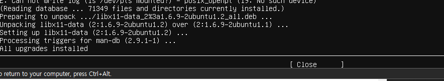 로그를 한번 보면 모든 업그레이드를 설치 완료했다고 기록돼있다.