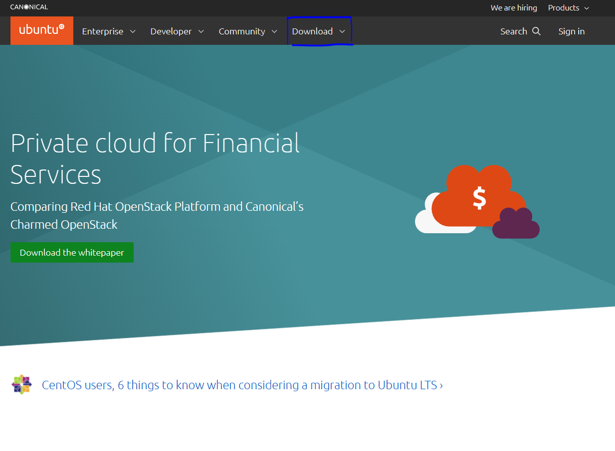 위 사이트는 우분투 홈페이지다. 접속한다.