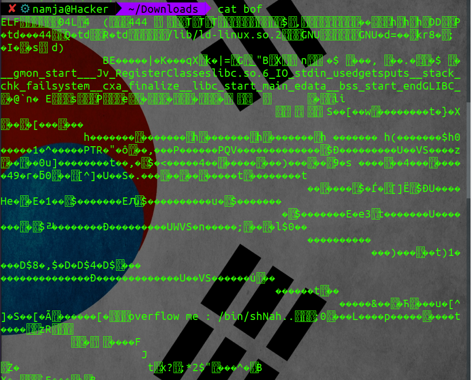 이번에는 cat으로 열어 보았다. 다 깨진 글이 였다. 깨진글 == gdb 로 해야 겠구나 생각했다.