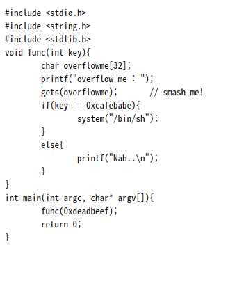 buffer overflow라는 걸 통해 그것이 가능하게 된다고 했다. 원리는 처음 배정된 버퍼크기인 변수가 있는데 그 버퍼크기를 넘긴 값을 주면 그 값 이후에는 다른 영역으로 까지 값이 넘어간다걸 이용하는거다. 그 넘어간 값을 이용하는것이 바로 buffer overflow라는 것이다.