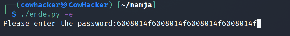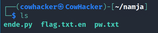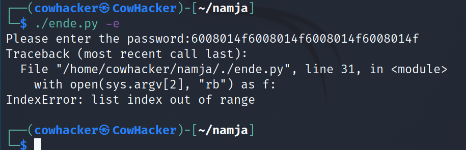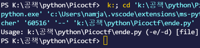 실행할 때 들어가는 입력값./ende.py에 -e라는 입력값을 줌으로써 위에서 봤던 if문이 실행됐다.