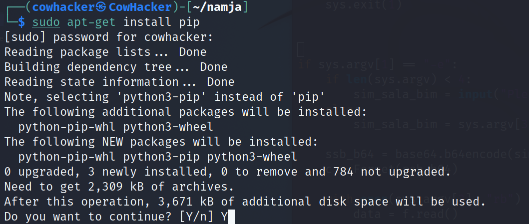먼저 파이썬 모듈을 설치할 수 있게 해주는 pip 녀석을 설치한다.