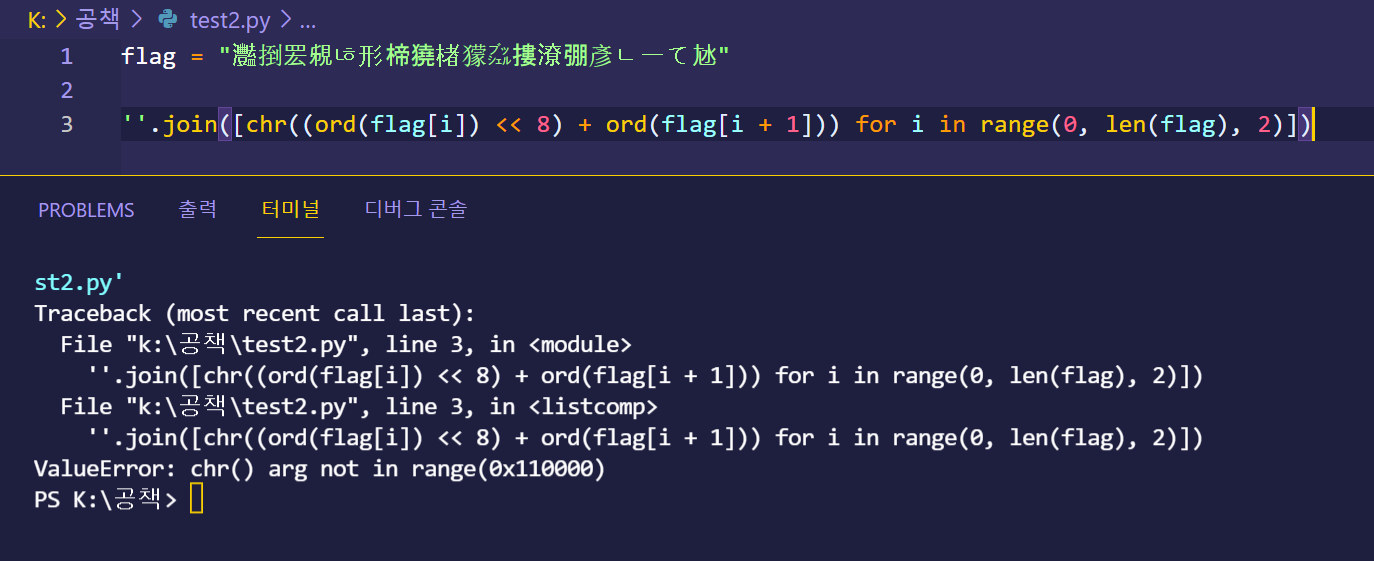 모든 문자를 ord함수에 적용시켜 출력해봤다.