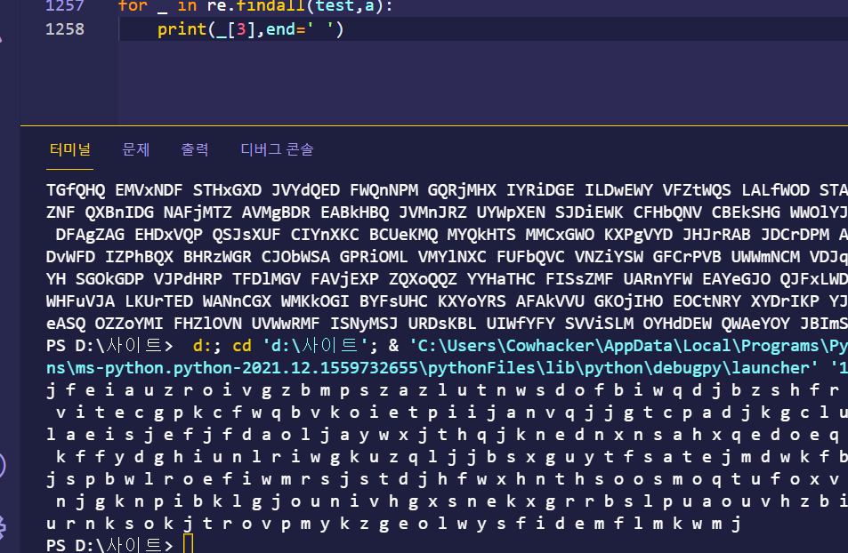 print에 [3] 번째인 소문자만 꺼내봤다.