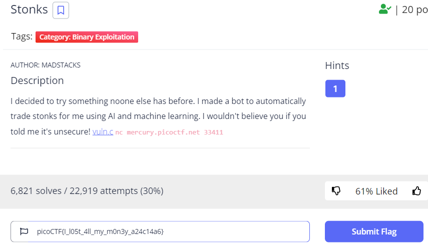 PicoCTF 8번 문제 ( Stonks ) 본문
