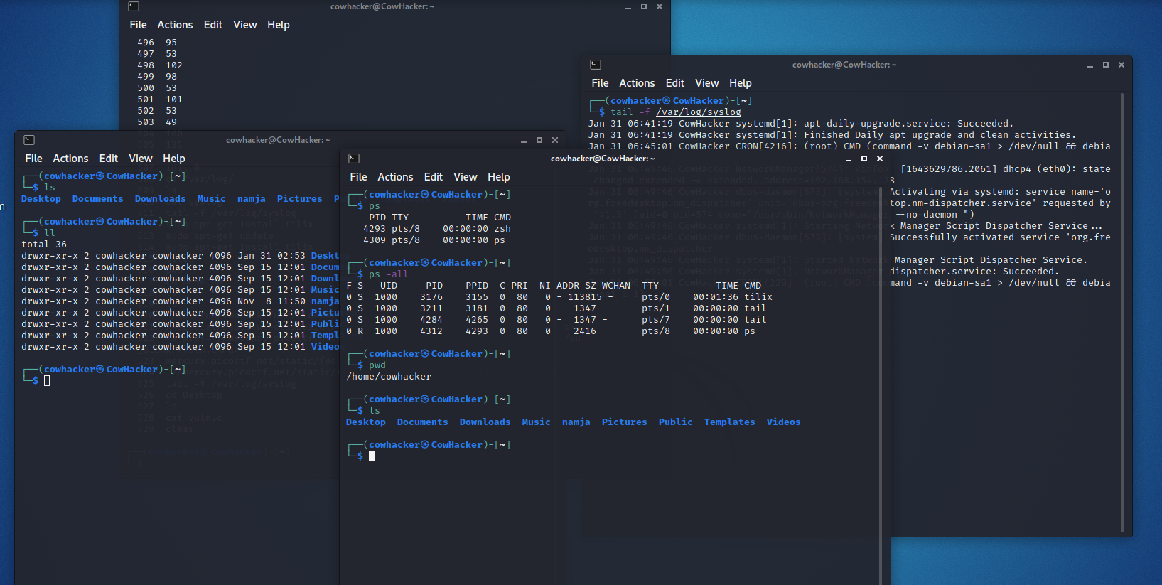 저렇게 한 터미널 안에 여러 터미널을 띄울 수 있다!!!