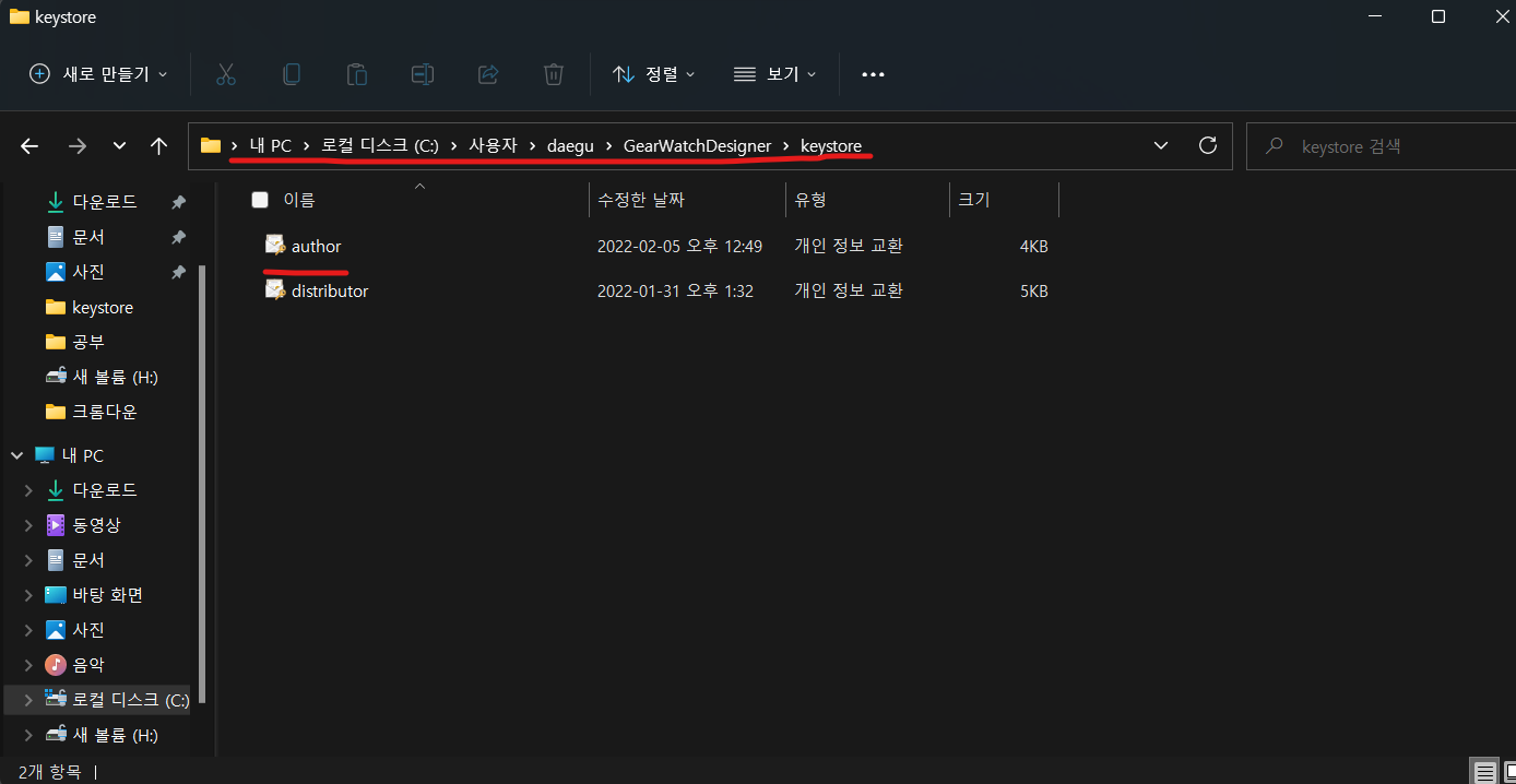 위 경로로 가면 인증 키 파일이 있는 걸 볼 수 있다.