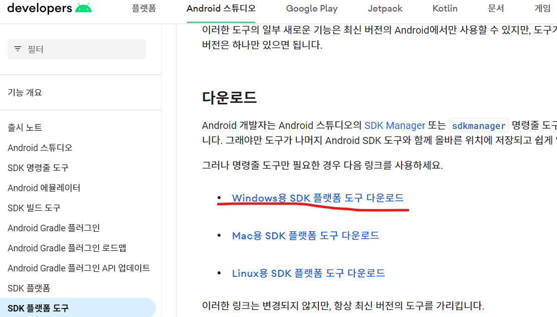 https://developer.android.com/studio/releases/platform-tools?hl=ko