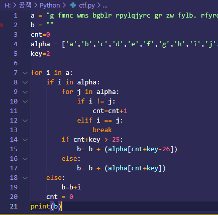 a = "g fmnc wms bgblr rpylqjyrc gr zw fylb. rfyrq ufyr amknsrcpq ypc dmp. bmgle gr gl zw fylb gq glcddgagclr ylb rfyr'q ufw rfgq rcvr gq qm jmle. sqgle qrpgle.kyicrpylq() gq pcamkkclbcb. lmu ynnjw ml rfc spj."