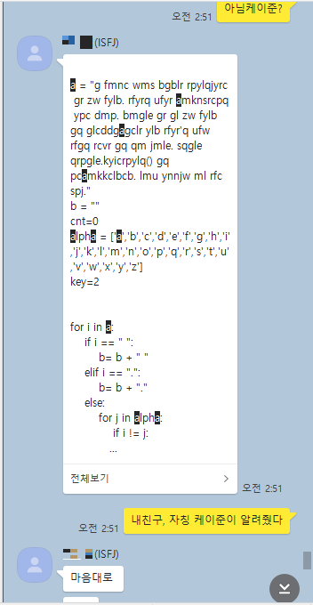 친구가 내가 복호화한 과정을 직접 코드를 짜서 줬다.