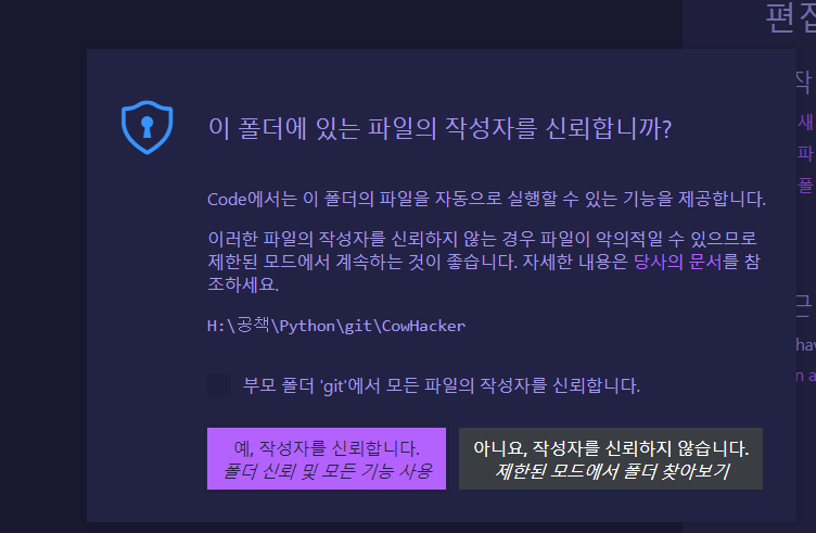 측 하단에 위 사진과 같이 열거냐고 뜬다.