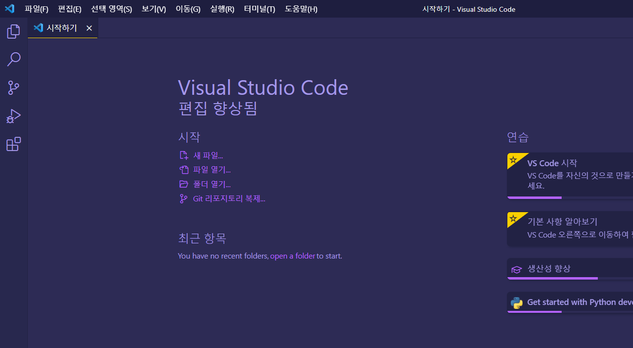 그럼 이제 Visual Studio Code를 실행시킨다.