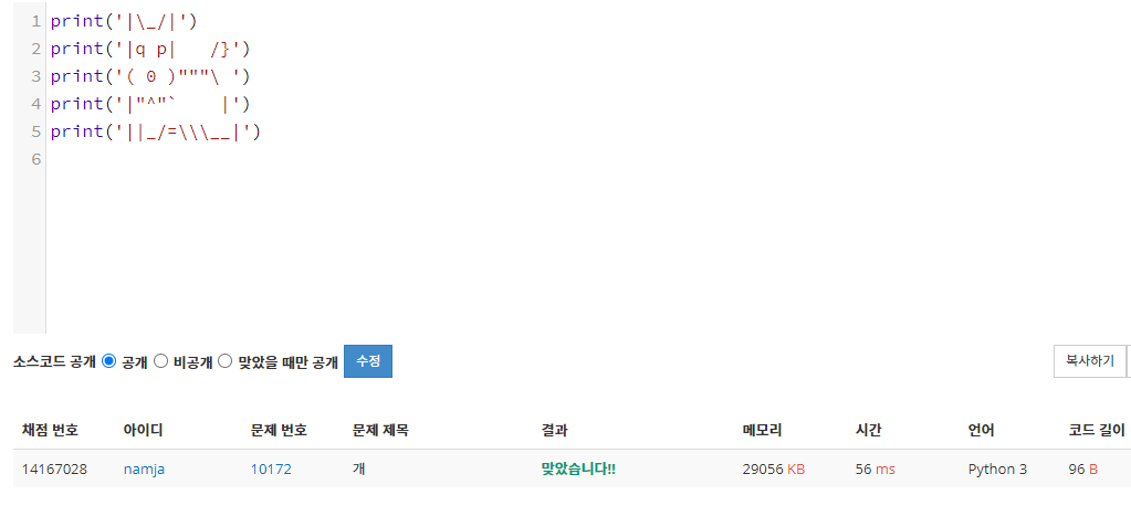 | 백준 10171번 고양이 (0) | 2020.08.07 |