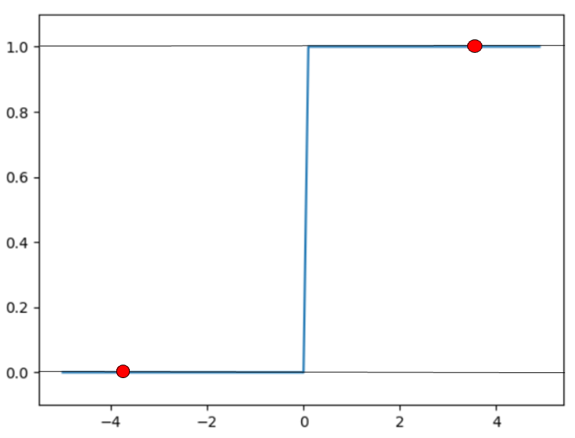 계단 함수는 대부분의 장소에서 기울기가 0이다.