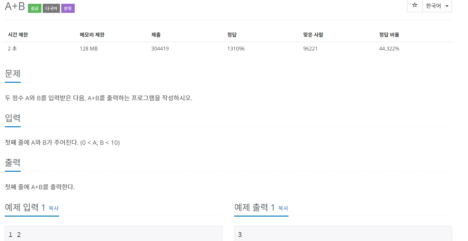 백준 1000번 문제 A + B 문제를 풀어 볼것이다.