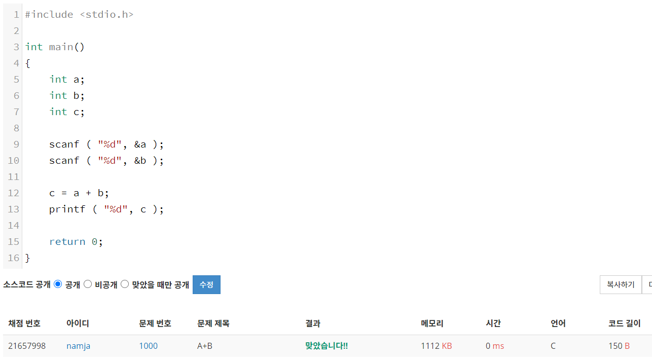 문제 요구 사항은 두개의 입력 값을 받아 그 입력값을 더한것을 출력 하라는 것이였다.