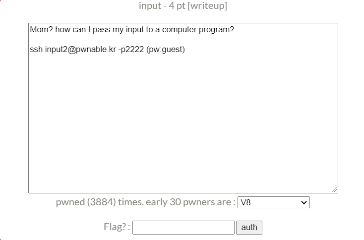 pwnable.kr 사이트 문제 중 input이라는 문제를 풀어볼 것이다.