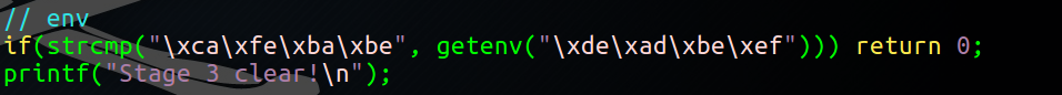 \xde\xad\xbe\xef라는 환경변수가 strcmp 즉, \xca\xfe\xba\xbe이어야 한다는 말 같았다.