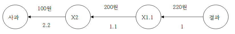 200원이 X1.1 노드를 거친 후 220원이 된다.