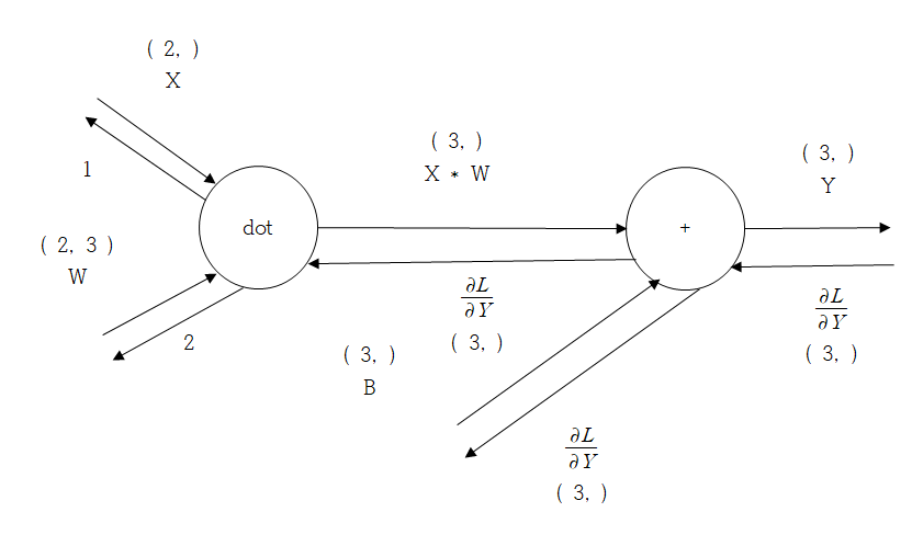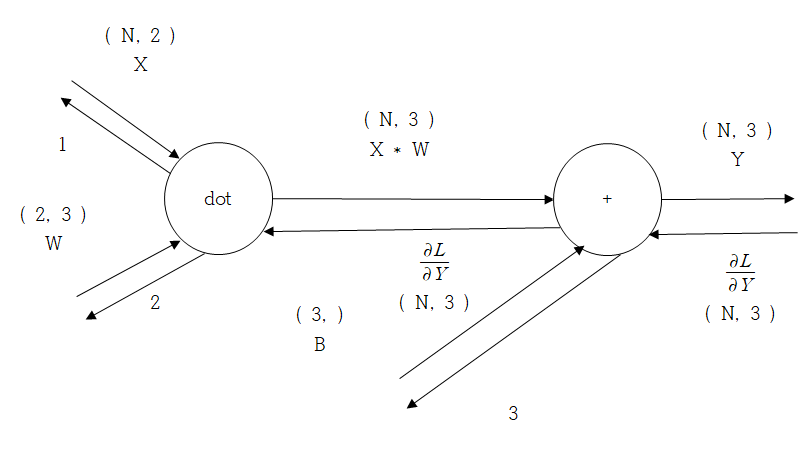 그림2 는 Affine계층의 계산 그래프를 나타낸것이다.