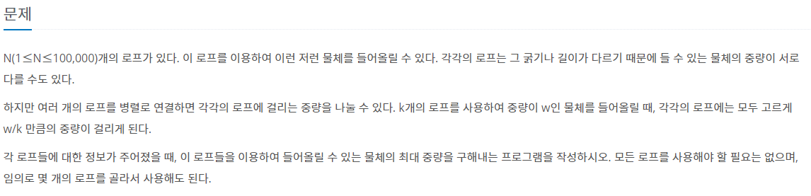 lopelist = [] # 로프 종류를 담을 리스트다.