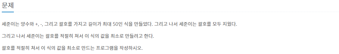 백준 1541번 잃어버린 괄호를 풀어봤다.