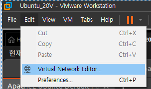 VMware 왼쪽 상단에 Edit을 눌러 위 사진에 있는 "Virtual Network ~"를 클릭한다.