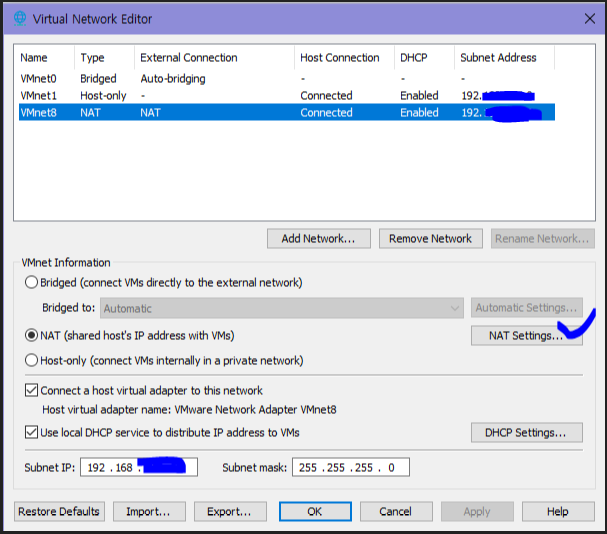 2. VMware 네트워크 설정