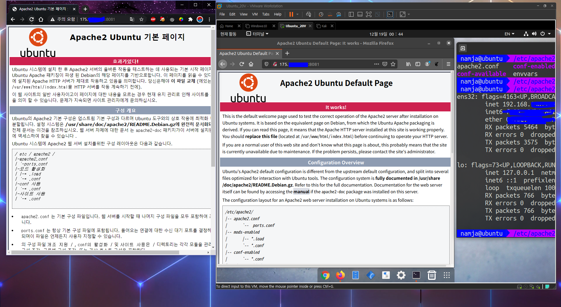 VMware에서 파이어폭스 브라우저를 사용해 서버 접속 한 사진이다.