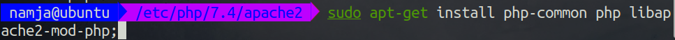 sudo apt-get install php-common php libapache2-mod-php;