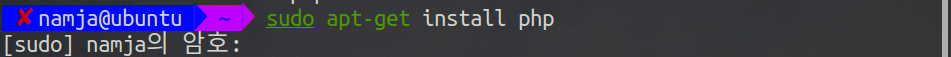 우분투에 php가 설치돼있는지 위 명령어 ( php의 버전을 확인하는 명령어 )를 통해 확인해본다.