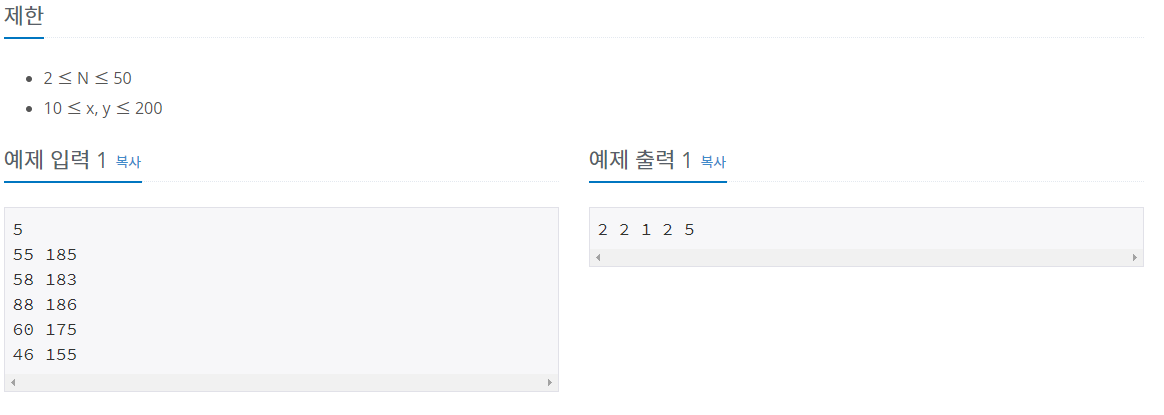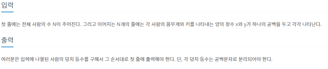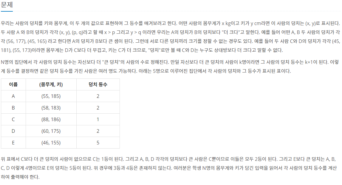 백준 7568번 덩치 본문